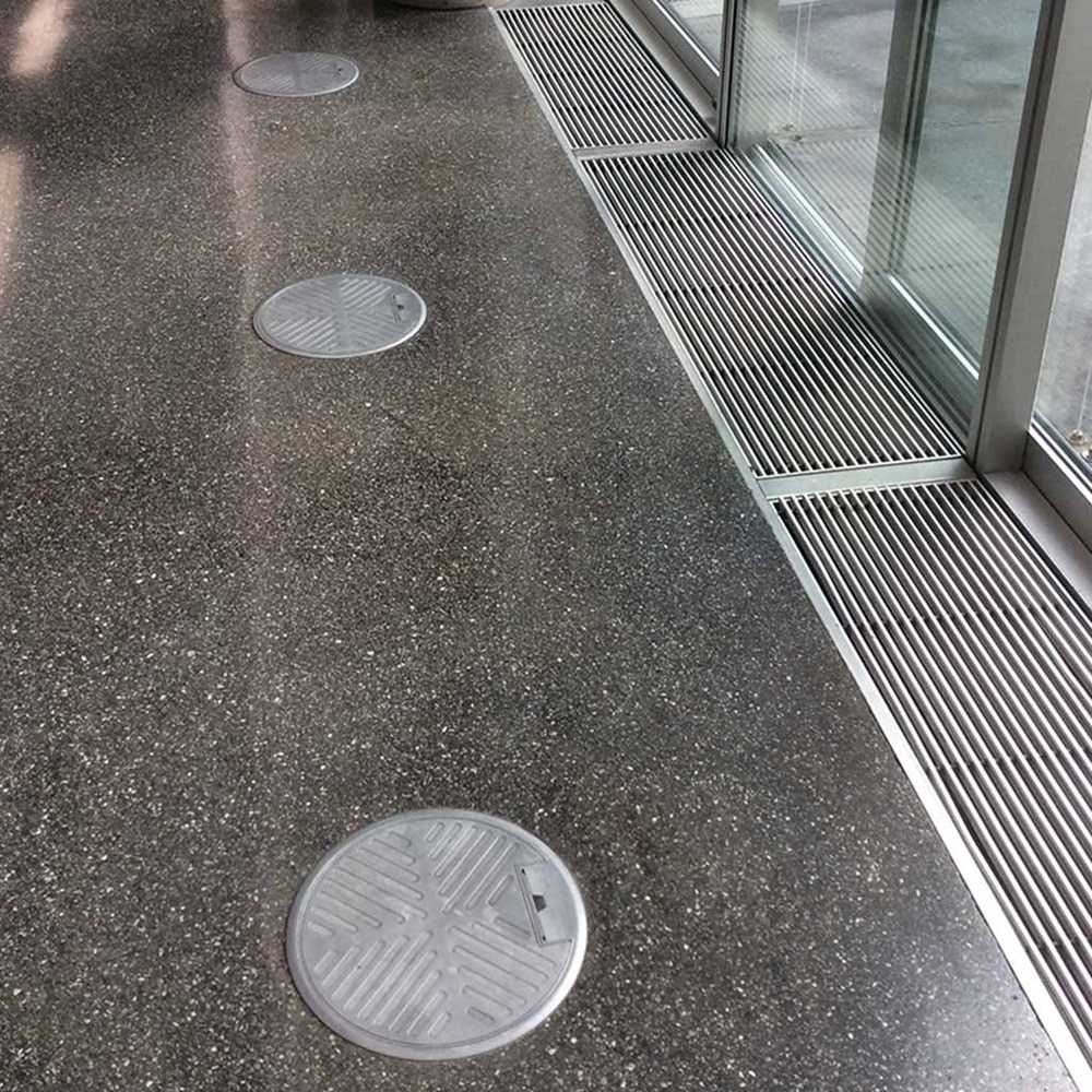 - Mit den unauffälligen Bodentanks sind Strom und Netzwerk immer in Reichweite.
